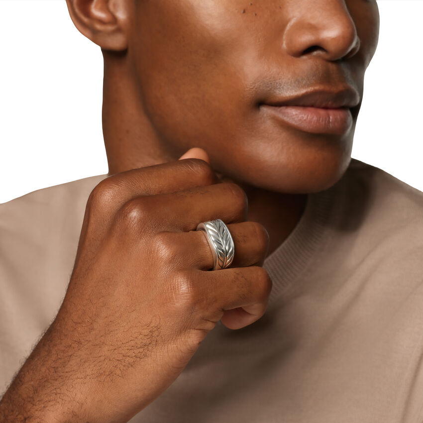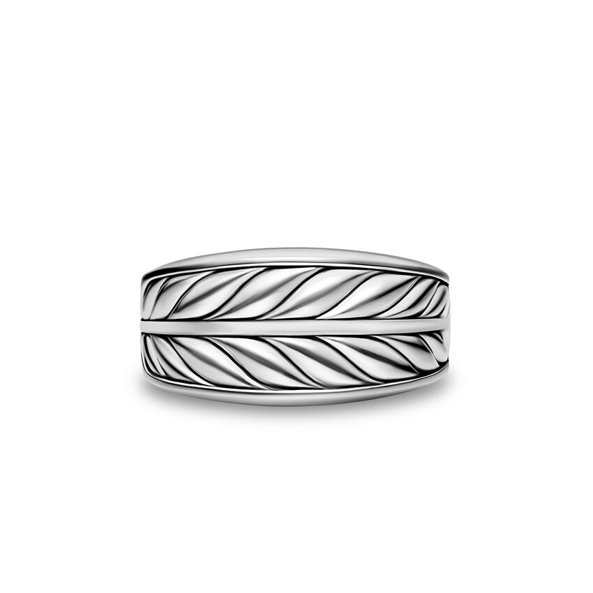 David Yurman skillfully reinterprets chevron—the ancient V-shaped pattern used in architecture and art—in this modern, sculptural collection. Viewed in relation to one another, each half of the motif is a mirror image of Cable.