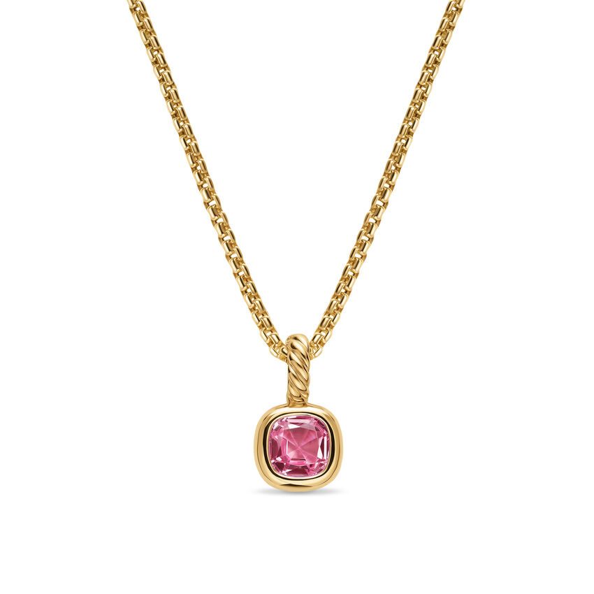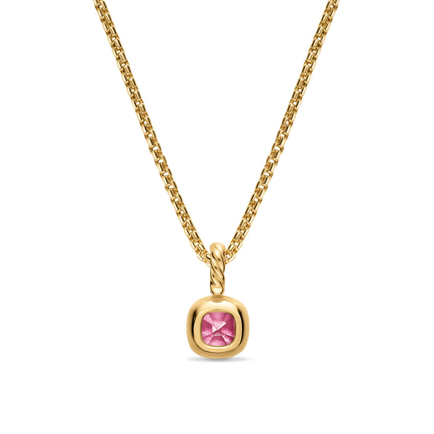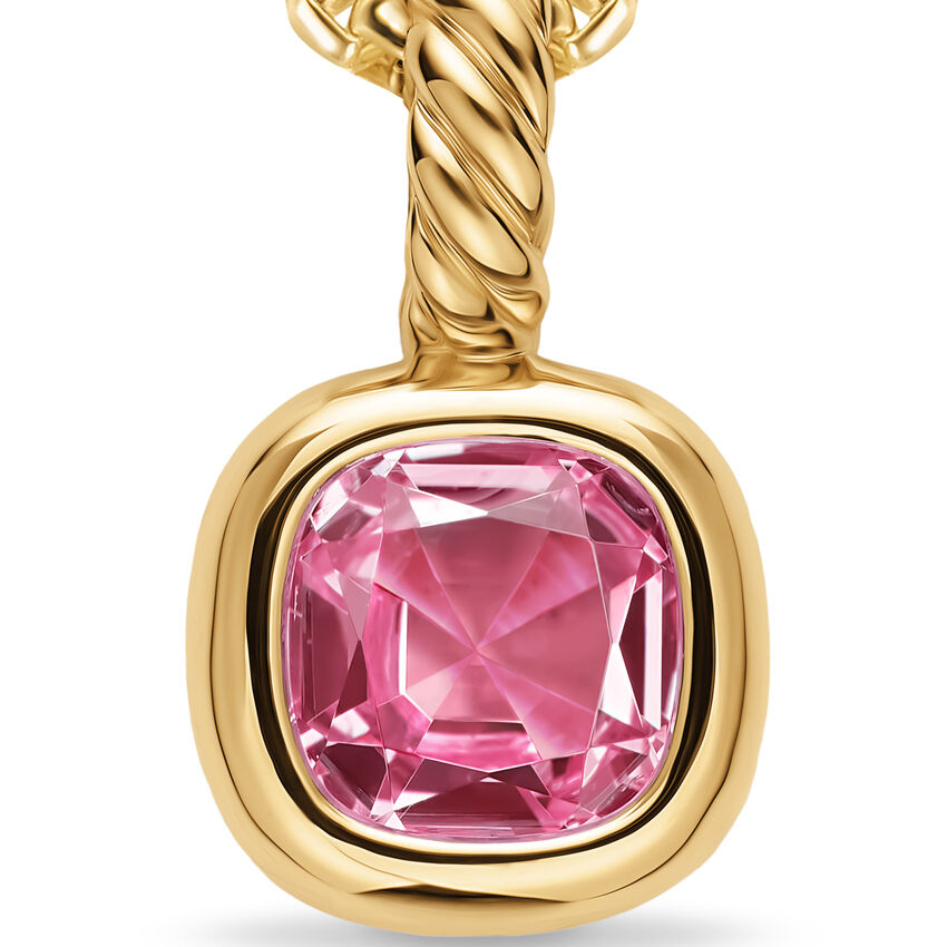Mini Cushion Cut Amulet in 18K Yellow Gold with Pink Tourmaline, 7.6mm
