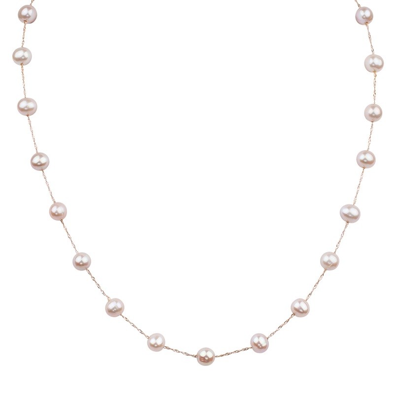 Crafted in 14k rose gold, this 18-inch "tin cup" necklace features natural pink freshwater pearl stations. The pearls range in size from 6-6.5mm. Complete the look with our 14K Rose Gold Tin Cup Pearl Bracelet!