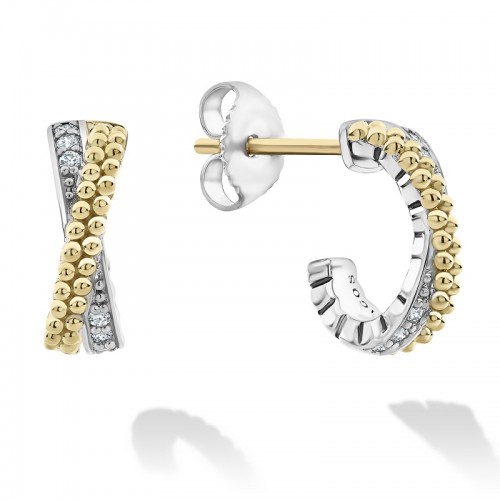 Diamond open stacking ring with 18K gold and sterling silver Caviar beading. Ware Sku Reference: JMSR3226